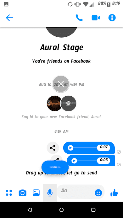 Recording is simple. From the messenger app, simply press and hold the voice record button while speaking.