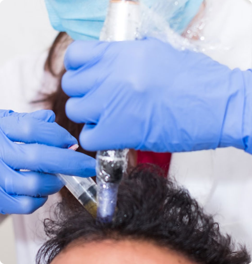 We apply the PRP solution using small injections then use a microneedle pen that targets the area of your scalp where follicles need to regenerate.